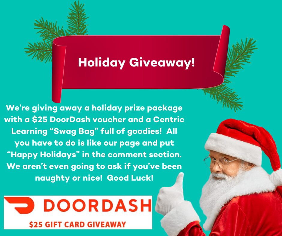 Centric Learning is celebrating the holidays and we want to treat YOU! Simply go to our Facebook Page and enter “Happy Holidays” in the pinned comment box. That’s it! We’re not even checking the naughty list!